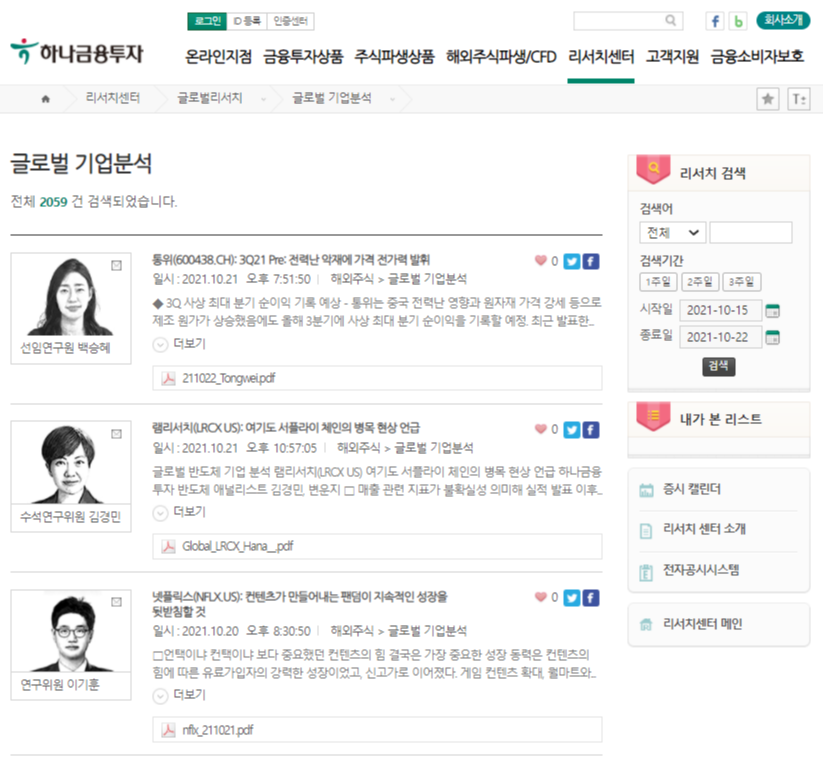 증권사 내 각 분야의 전문 애널리스트들이 업로드한 분석 리포트들을 볼 수 있는 공간인데요.