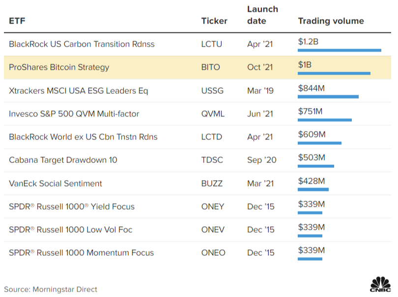 이 날 BITO의 뉴욕증시 거래액은 9억 8400만달러로 ETF 상장 첫날 거래액으로는 저탄소 전환 ETF '블랙록 US 카본 트랜지션 레디네스 ETF(BlackRock US Carbon Transition Rdnss ETF)' 에 이어 역사상 두 번째로 많은 수치를 기록했습니다.