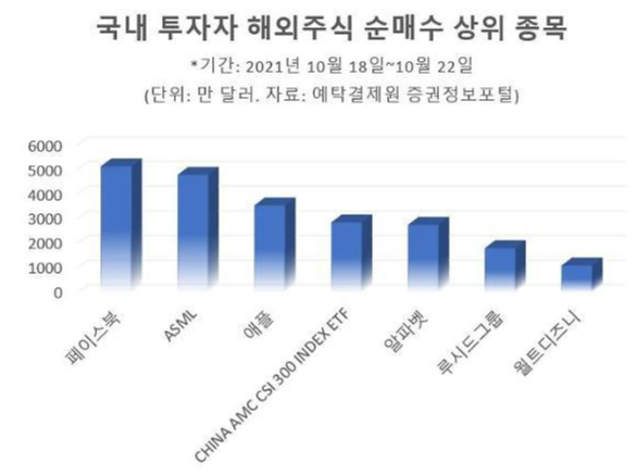 예탁결제원 증권정보포털(SEIBRO)에 따르면 페이스북은 지난 10월 18일부터 22일까지 1주일간 국내 투자자들이 가장 많이 순매수한 종목에 이름을 올렸습니다.