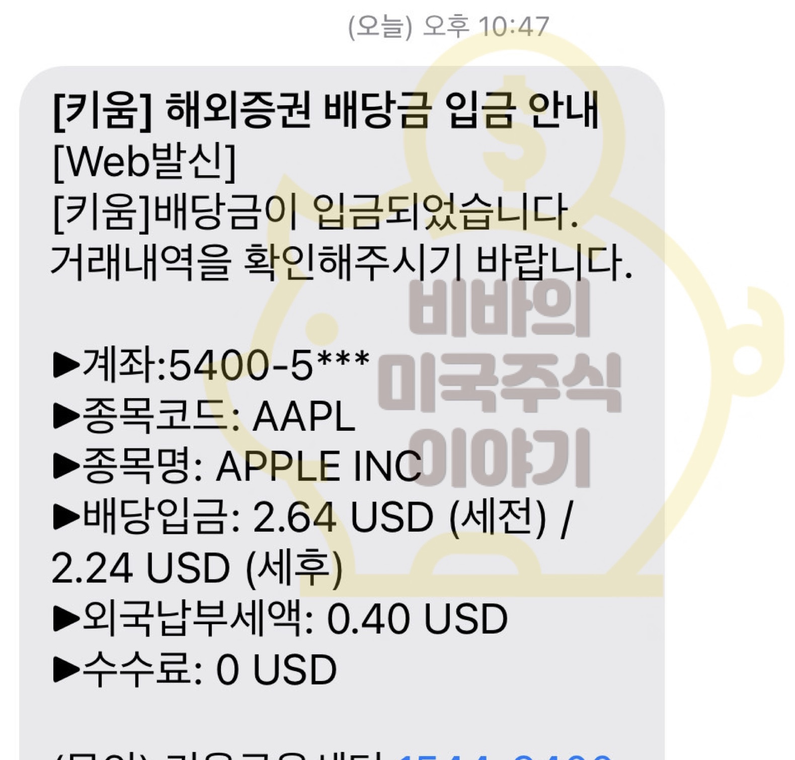 저도 분기별 또는 월별로 나오는 배당금 문자를 받을 때면 흐뭇~하답니다 :)