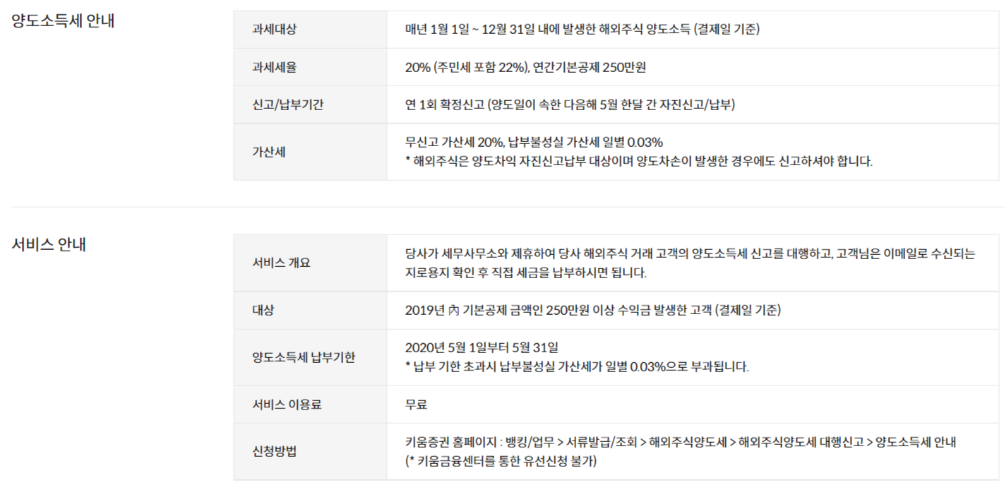 키움증권은 제가 미국주식을 하면서 이용하고 있는 증권사라 양도세 관련 정보를 찾아보았습니다.