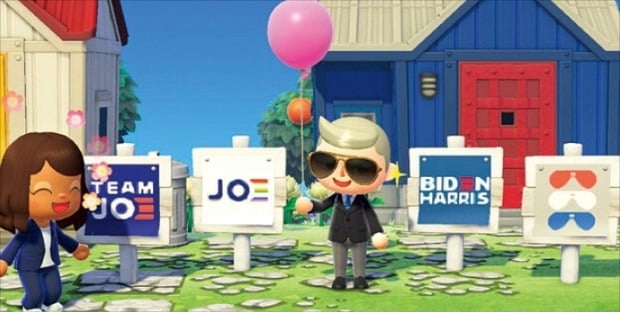 미국에서 바이든 대통령이 동숲에서 선거운동을 하고