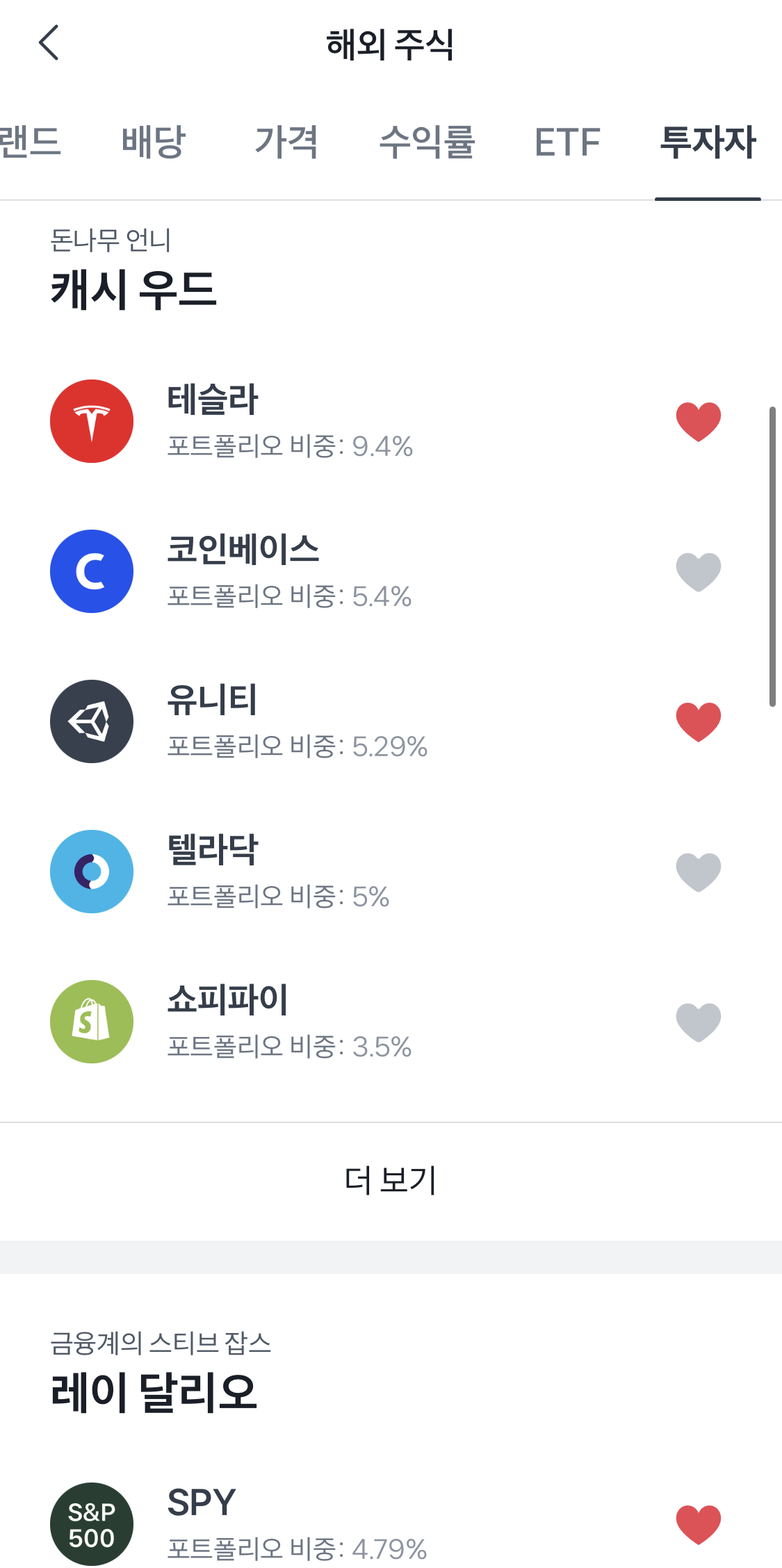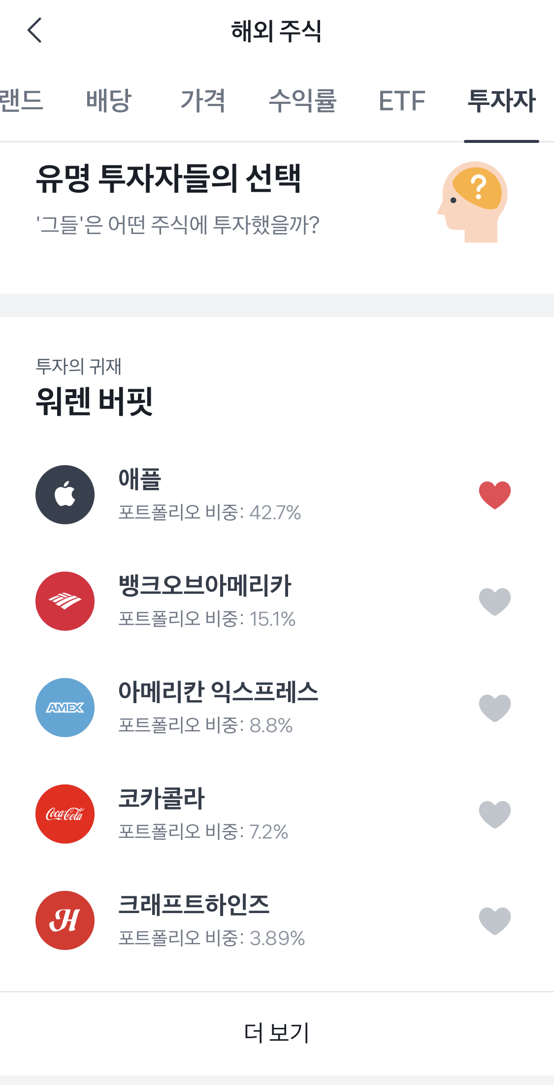 유명 투자자들의 선택이라는 메뉴가 대박인데,