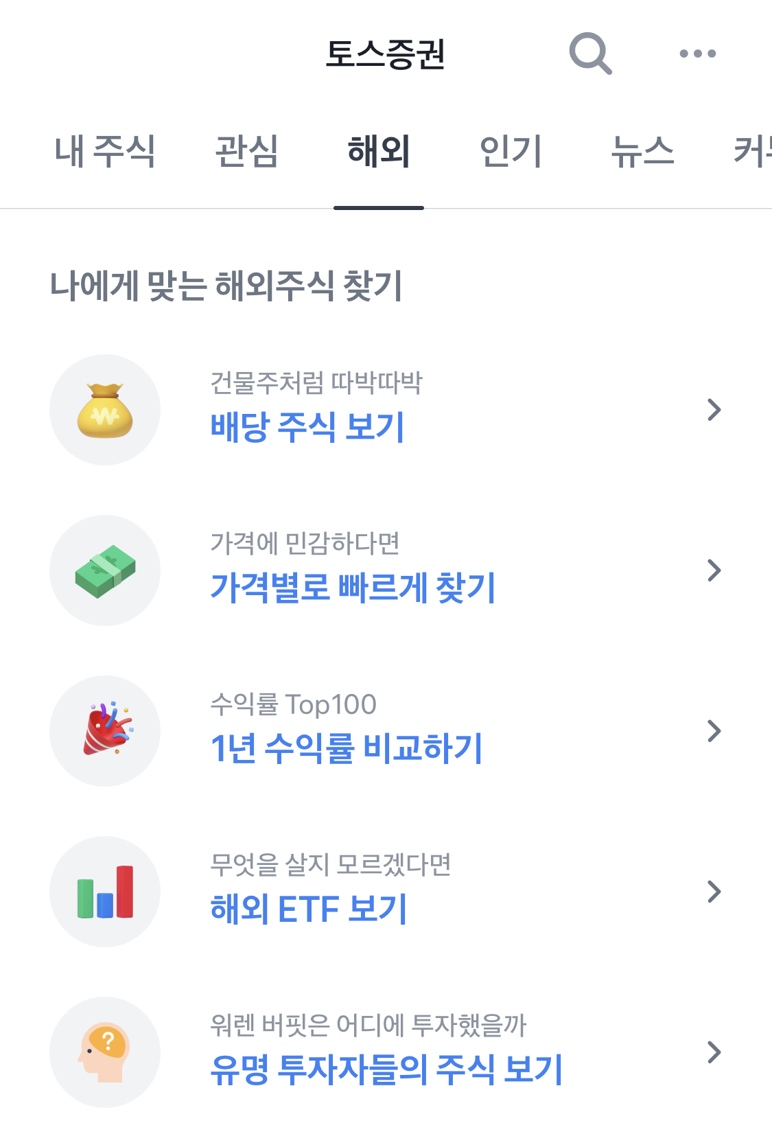 해외주식 초보자들도 한번쯤 사볼까 하고 쉽게 접근할만한 UI