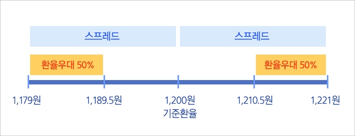 환율 우대란, 금융기관이 정해둔 환전 스프레드를 할인해주는 것을 뜻합니다.