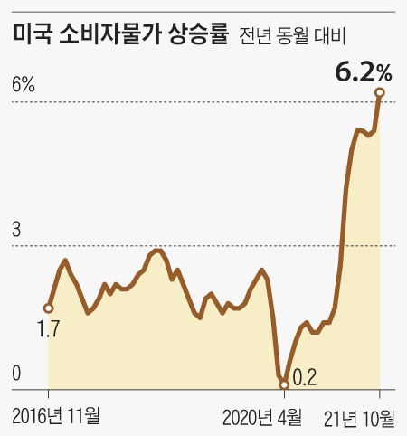 미국의 소비자물가지수(CPI) 상승률은 최고치를 달성하는 등 물가 상승 흐름에 현재 미국 정부는 인플레이션을 막기 위해 '돈 풀기'가 아닌 '돈줄 조이기' 를 위한 '금리인상'과 '테이퍼링'을 앞두고 있습니다.