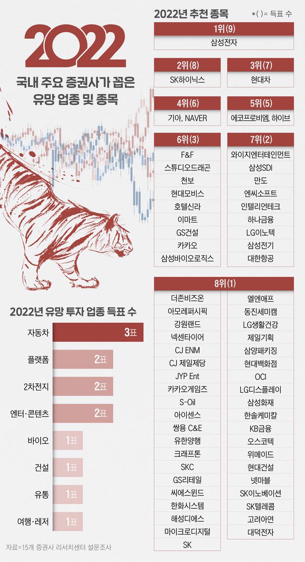 아무래도 글로벌 공급망 부족으로 반도체 업황 악화에 따른 삼성전자, SK하이닉스 등 반도체 기업들이 힘을 못 받은 한해였던 것에 비해 2022년에는 주가 상승 여력이 있을 것이라는 예상인 것이다.